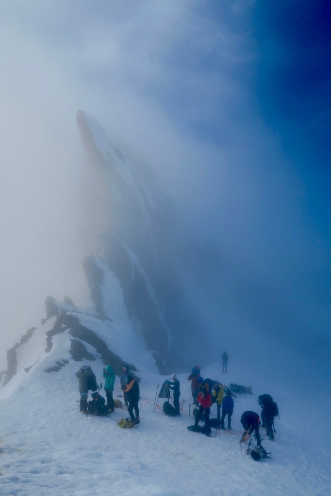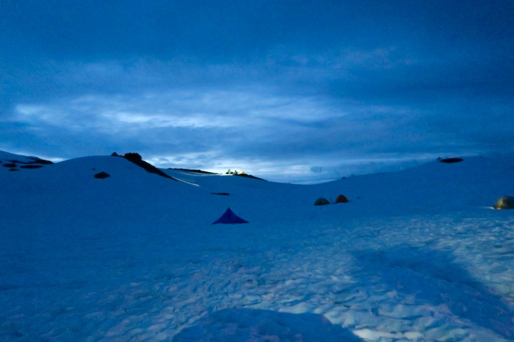 The rain finally slows its relentless pattering on the roof of the tent a little after midnight. I’ve always loved sleeping to the sounds of the rain, but nervous excitement prevents me from getting a good rest. Around 2:45 I hear the unzipping of tents as someone is getting up to check the weather, whispers between our instructors are followed by tent by tent wakeup calls — we have our window, its summit day.